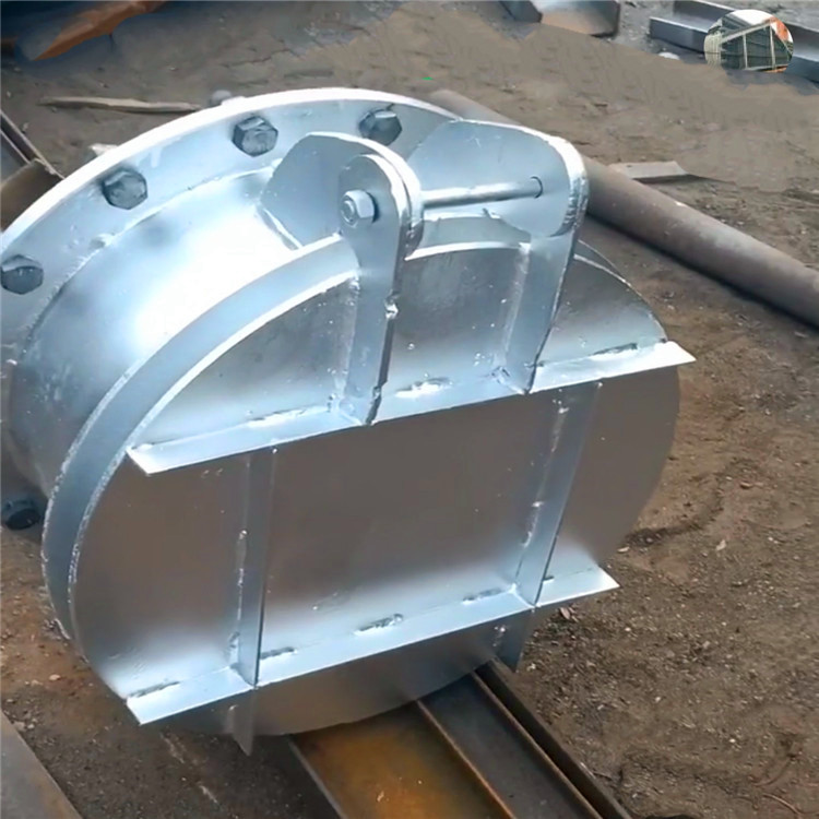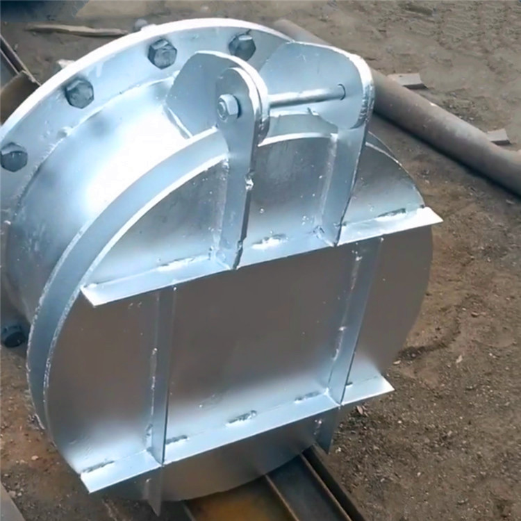 拍門主要由閥體、閥蓋、鉸鏈構件組成,有鑄鐵和碳鋼兩種材質,其啟閉力來自水源壓力,不需人工操作。該拍門內的水壓大于拍門外側壓力,則開啟;反之則關閉,已達到溢流和止回的作用。
