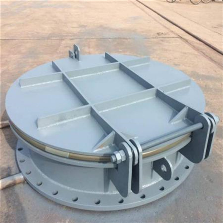 鋼制拍門具有流道正向單向開啟和反向關閉的作用。拍門的閥蓋借助于自身配重的平衡作用,在水流的作用下使門頁自動開啟或關閉,或稍加外力作用使門頁開啟或關閉;拍門蓋上設有拉環,拉動拉環此蓋的開啟角度應大于60度,無卡阻現象,開關應自由靈活,當拍門部分泡在水中,管道內部壓力較大,反向壓力較小時,拍門允許部分泄漏量,當河道水壓增大時,拍門將自動關閉密封。