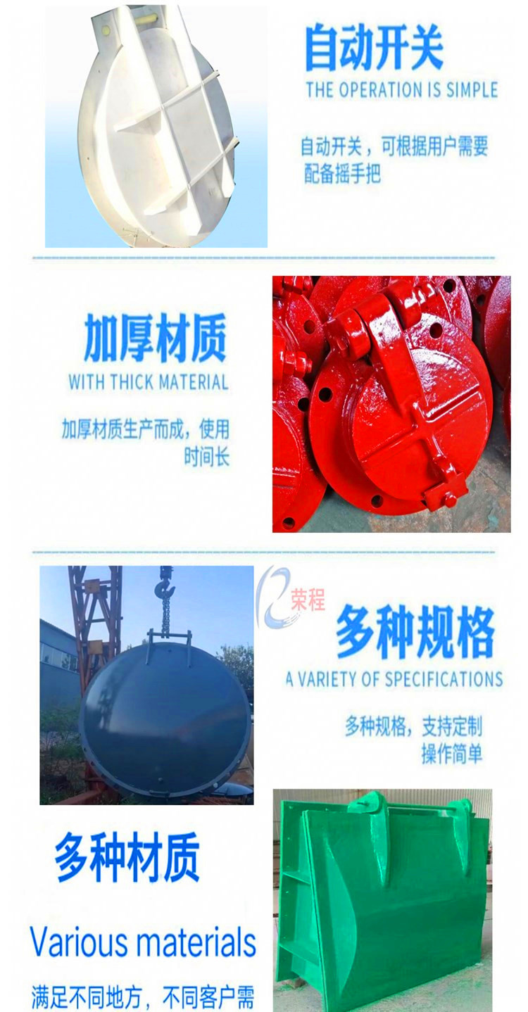 材質(zhì)分為不銹鋼、鑄鐵、型鋼、復(fù)合材料(玻璃鋼)等多種材料,拍門又分為很多種,比如,浮箱式拍門,平板式拍門,套筒式拍門側(cè)翻拍門等等,可以做成懸掛式,單開門,雙開門,節(jié)能型根據(jù)客戶需要鑄造合適材質(zhì)拍門,業(yè)務(wù)咨詢13582492022孫經(jīng)理,微信同號(hào)。