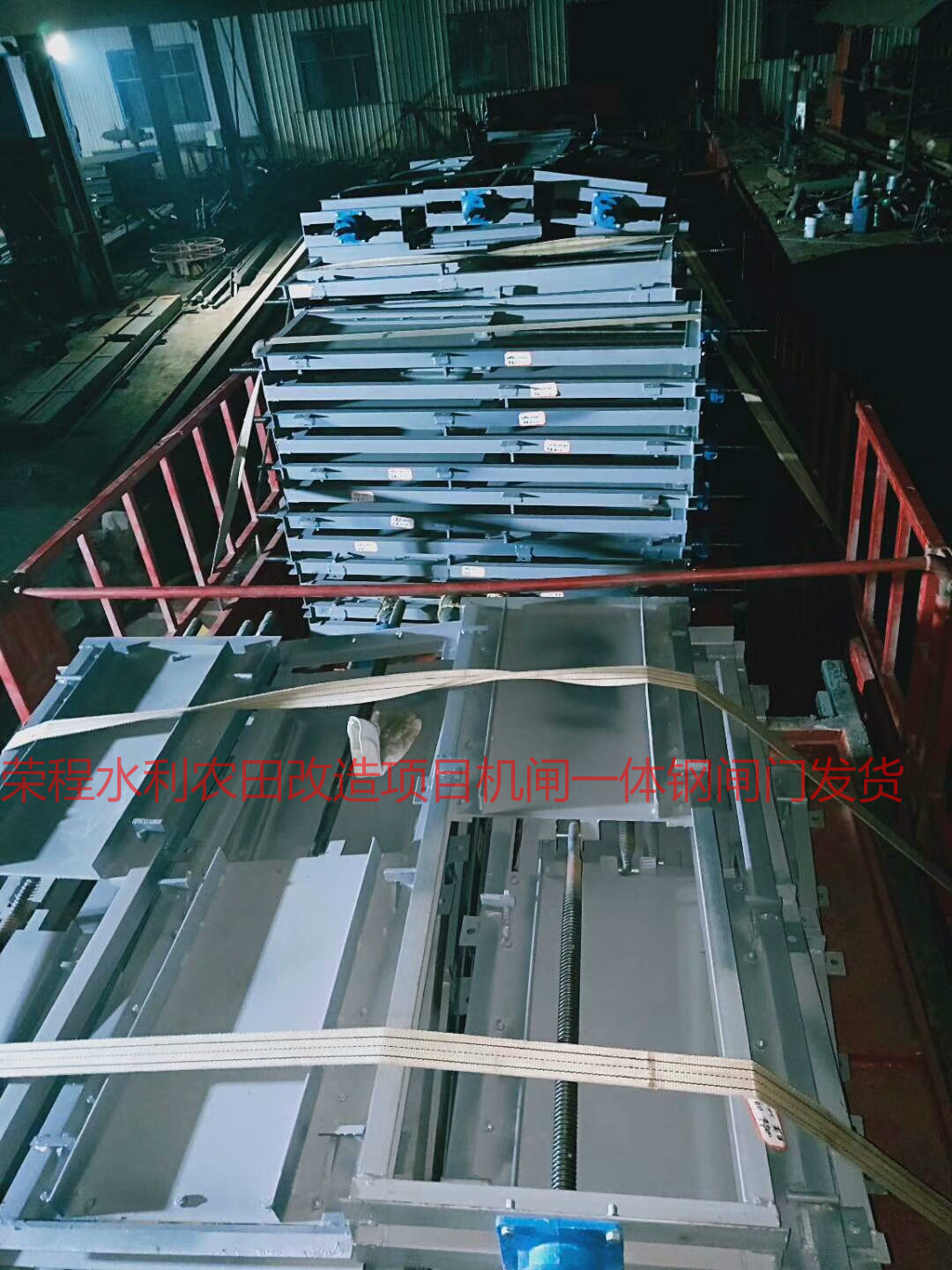 機(jī)閘一體鋼制閘門是榮程水利生產(chǎn)的20多種閘門中的一種鋼制閘門,是閘門和啟閉機(jī)一體的水利設(shè)備,該設(shè)備用于排水工程、污水處理、水利、水電工程中常用的攔水、止水設(shè)備,由門框、閘板、止水橡皮及可調(diào)式鍥型壓塊等部件組成。不銹鋼閘門久用磨損后,其密封面可通過鍥型壓塊的調(diào)整來保證正常工作。 該設(shè)備以優(yōu)質(zhì)鋼板為基材,采用橡膠止水、防腐方式為表面進(jìn)行噴沙除銹及熱噴鋅,鋼制閘門具有結(jié)構(gòu)合理堅固、耐磨耐蝕性強(qiáng)、性能可靠;安裝、調(diào)整、使用、維護(hù)方便等特點(diǎn)。