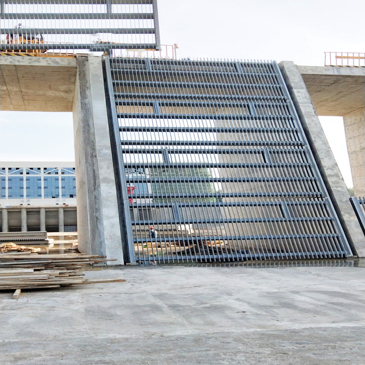 攔污柵一般設在設在進水口前,用于攔阻水流挾帶的水草、漂木等雜物(一般稱污物)的框柵式結構。攔污柵由邊框、橫隔板和柵條構成,支承在混凝土墩墻上,一般用鋼材制造。柵條間距視污物大小、多少和運用要求而定。