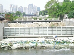 在水利水電建設中,隨著城市用水、景觀建設及環境整治和灌溉、發電的需要,翻板閘,水閘和橡膠壩得到廣泛的運用。然而,橡膠壩等生產比較復雜,運行時充水(充氣)升壩或放水(放氣)塌壩時間較長,影響快速截流或泄洪,再加上橡膠易老化的弊端,容易發生質量事故,F在市場上出現大量鋼結構閘門,或翻板閘但無論是提升式或臥倒式,單孔都很難適用較寬的河道。鋼壩閘是一種新型可調空控溢流閘門,它有土建結構、帶固定軸的鋼閘門門體、啟閉設備等組成。這種建筑物適合于閘孔較寬(10米~~100米)而水位差比較小的工況(1~~7米),由于它可以設計的比較寬,可以省區數孔閘墩,所以不僅結構簡單,可以節省不少土建投資,而且可以立門蓄水,臥門行洪排澇,適當開啟調節水位,還可以利用閘門門頂過水,形成人工瀑布的景觀效果。