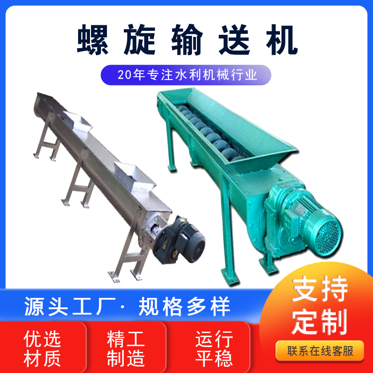 螺旋輸送機(jī)在輸送形式上分為有軸螺旋輸送機(jī)和無(wú)軸螺旋輸送機(jī)兩種,在外型上分為U型螺旋輸送機(jī)和管式螺旋輸送機(jī)。有軸螺旋輸送機(jī)適用于無(wú)粘性的干粉物料和小顆粒物料.(例如:水泥、粉煤灰、石灰、糧等)而無(wú)軸螺旋輸送機(jī)適合輸送機(jī)由粘性的和易纏繞的物料。(例如:污泥、生物質(zhì)、垃圾等)螺旋輸送機(jī)的工作原理是旋轉(zhuǎn)的螺旋葉片將物料推移而進(jìn)行螺旋輸送機(jī)輸送,使物料不與螺旋輸送機(jī)葉片一起旋轉(zhuǎn)的力是物料自身重量和螺旋輸送機(jī)機(jī)殼對(duì)物料的摩擦阻力。螺旋輸送機(jī)旋轉(zhuǎn)軸上焊的螺旋葉片,葉片的面型根據(jù)輸送物料的不同有實(shí)體面型、帶式面型、葉片面型等型式。