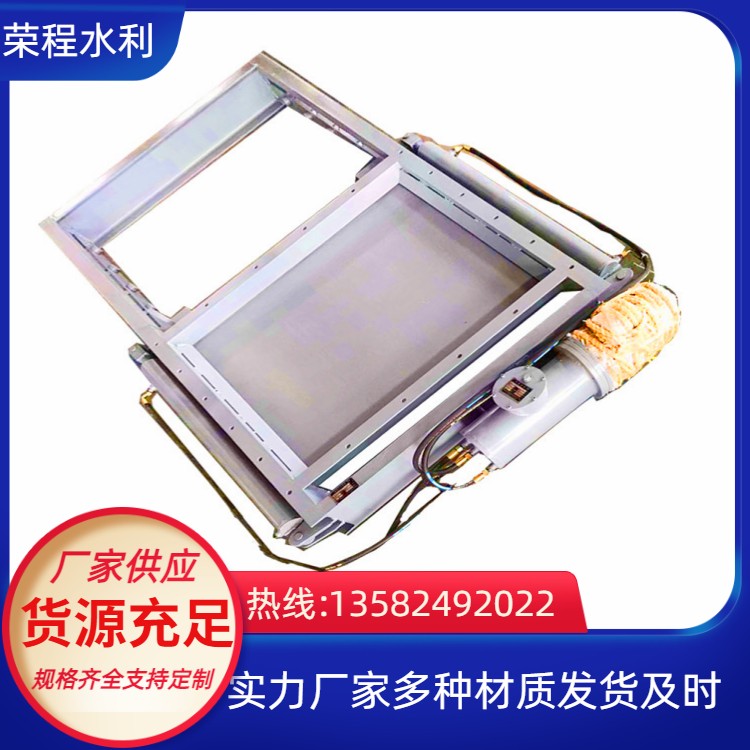 堰門采用明桿式結構形式,平面加筋型、附壁式安裝,適用于安裝在墻上的升桿式方型或圓型孔口堰門,其平整的內底與井壁緊密貼合。每個堰門帶有絲桿、接桿、連軸節及安裝在平臺上的帶推力軸承的啟閉機,并配套護罩、桿導架、基礎螺栓等所有附件,電動裝置的潤滑油也隨機提供。